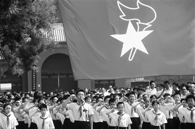 “铭记历史,缅怀先烈,珍爱和平,开创未来。”阵阵激昂的宣誓声在钟鼓楼广场上回荡。昨天下午,“铭记历史 振兴中华”东城区纪念中国人民抗日战争暨世界反法西斯战争胜利70周年主题党团队日活动举行。东城区党员代表进行宣誓,优秀团员代表及少先队员代表也重温誓词。本报记者 边磊 于佳 摄影报道