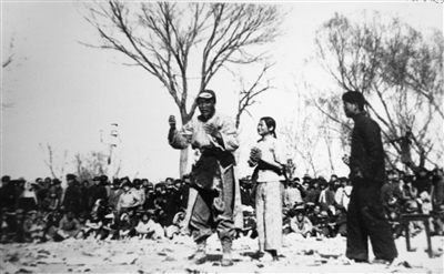 晚上,灯下,一张老照片让我浮想联翩,夜不能寐。照片下文字说明:1940年农历四月十四,八路军挺进剧社在妙峰山表演街头剧。