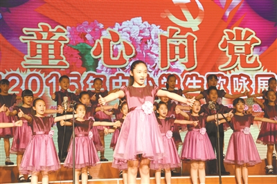 朝阳区2015年“童心向党”中小学生歌咏展演活动昨天拉开帷幕,8所学校共展演14首歌曲。据了解,该项活动将纳入暑期各类主题教育实践活动,以丰富未成年人的精神文化生活。该区从6月开始在全区中小学校开展“童心向党”歌咏活动,以年级或班级为单位,利用音乐课、班队会、课外活动等时机,组织未成年人广泛学唱、传唱爱党爱国爱社会主义歌曲。歌咏活动以合唱为主,独唱、表演唱、歌伴舞等形式为辅,培养广大未成年人心向党、跟党走的情感信念。暑假期间,活动将依托朝阳文明网、朝阳未成年人思想道德建设工作网,开设歌咏活动专栏进行广泛宣传、传唱。
