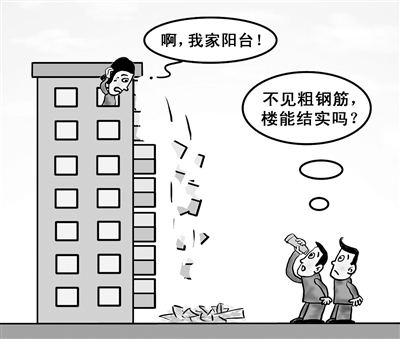 沈阳大东区合作街120号发生楼体坍塌事故。据该楼李阿姨回忆,她当时正在家中剁饺子馅,“一开始就听见阳台传来细微的噼里啪啦声,我就想到阳台去看看,走到厨房时又合计,响就响吧!于是又回到客厅。可就在几秒钟后,突然听见轰隆一声巨响,阳台已经没了!”(7月7日《华商晨报》)