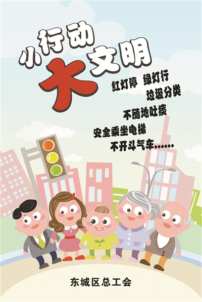 2012年,区总工会举行了“小行动,大文明”活动启动仪式,并公映了一部时长53秒的卡通宣传片,旨在让每一个东城职工能够从一点一滴做起,提高思想道德水平和文明素质。东城区总工会主席张晓林说:“从小事做起,从身边做起,从现在做起,人人走出文明一小步,才能促使我们的社会迈出文明一大步,使文明行为成为我们的习惯,推动全区广大职工群众文明素质的提升。”