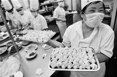 今天正式入伏。“头伏饺子”作为节气吃食,也热腾腾地端上了餐桌,从昨天开始就有嘴急的食客提早在饺子馆排队等着吃“头伏饺子”了。京城各大饺子馆也早早地为头伏的饺子做好了准备。“各种原材料已经备齐,为了保证头伏当天顾客吃的都是新鲜水饺,早上提前开门。”西四惠丰饺子楼负责人介绍道。本报记者 孙妍 摄影报道
