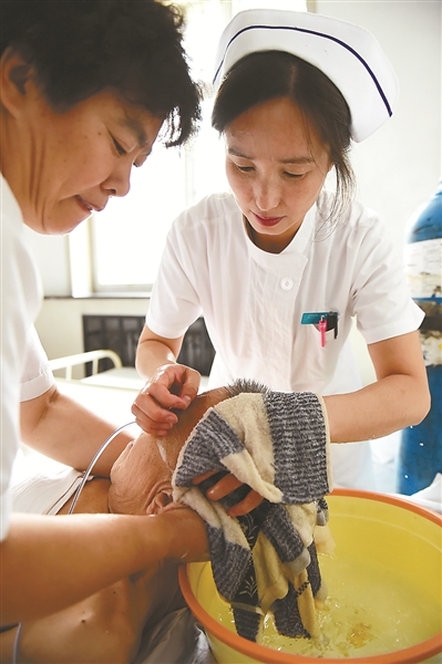 因为护理对象的特殊性,所以朱玉玲和同事们除去掌握必需的医护知识,还需要具备更多的耐心和细心。每两小时,她们会给病人翻一次身,有的病人一个小时要更换一次卧位,还要及时更换尿垫、擦洗臀部,处理大小便、做皮肤处理,防止褥疮发生。