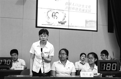 市公园管理中心近日在中国园林博物馆举办了以“倡导人口计生文化、共创和谐美满家园”为主题的人口和计划生育政策法规知识竞赛。经过笔试初赛,来自市属公园的8个代表队进入最终决赛。通过知识竞赛进一步宣传了相关法律法规和政策,倡导科学、文明、进步的婚育观念。 本报记者 邱勇 通讯员 王歆音 摄影报道