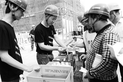 连日来的高温,灼烤着奋战在施工第一线的工人兄弟们。面对炎炎夏日,北京城建十六公司及时调整施工时间,通过提前以及延后施工时间的方式,避开气温最高的正午,在较为清凉的早晨和傍晚抓紧施工。不仅如此,公司还为工人兄弟安装了空调,准备了绿豆、红糖、防暑药品等,用空调的凉风和一桶桶解暑的绿豆汤给工人兄弟送去了清凉。本报记者 卢继延 通讯员 雷蕾 摄影报道