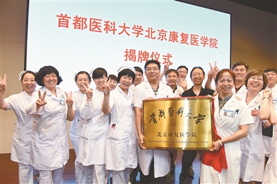 昨天上午,首都医科大学北京康复医学院正式揭牌,这标志着在北京工人疗养院基础上建立的职工医疗健康服务平台向专业化又迈进了一步。据悉,该院将先期开展康复治疗学和假肢矫形专业的本科教学,预计明年迎来首批学生并开展教学工作。目前,总面积近4000平方米的医学院楼建设和教育教学设备建设已经完成。详见第4版