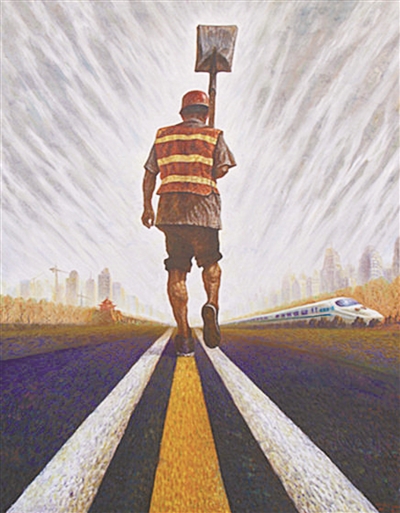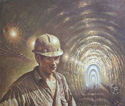 邓一文是中铁十六局集团一公司的一名工会干部,先后毕业于解放军艺术学院、中共北京市委党校美术专业,师从尚沪生、刘大为、杨林桂、方成等名家。他的作品多表现广大职工热爱企业,战天斗地的火热工地场景,看似有一种呼之欲出的力量,在他的笔下显得活灵活现、栩栩如生。他被北京市总工会、市文化局联合授予首届“北京市职工艺术家”称号,后又被中华全国铁路总工会授予“火车头职工艺术家”等称号。