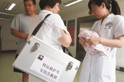 接到电话,新生儿外科副主任医师冯翠竹和护士长秦敬梅立即拎起转运救护箱随救护车风驰电掣般赶到北京市妇产医院。刚刚走进病区,患儿的爷爷和医生同时三步变两步地迎面疾步走来,冯主任一边向医生快速地询问患儿的病情,一边办理患儿转院手续。交接完成,冯主任便亲自抱起了患儿,向守护在楼外的救护车走去。