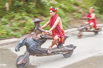 近日,一组菲律宾部落成员骑着拉风漂亮的自制木雕车下山的照片走红。这些部落成员所骑的车子完全是由木头雕刻制成的,上面雕刻着狮子、鹿甚至是龙的形象,不过没有刹车。