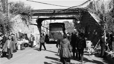 桥下,一条马路,穿洞而过。每到周日,这里逢集,百货云集、人声鼎沸、车水马龙、川流不息。桥下的人声鼎沸,与桥上的机车轰鸣,共奏着小镇的繁华。