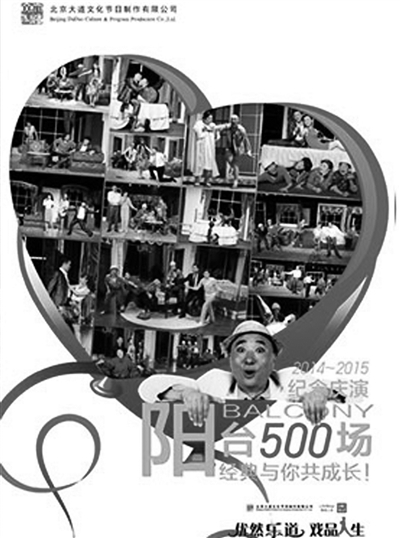 作为观众最喜爱的一部陈氏喜剧作品,《阳台》从2012年起首次进驻世纪剧院小剧场,在三年的时间里得到了无数认可和喜爱,每场的平均上座率达到了85%,稳居小剧场排名前三,创下京城小剧场的票房佳绩。如今《阳台》终于迈向了500场,此次演出调集了最佳青春阵容倾情演绎,集齐历届最强老穆、最牛侯建设、最悍张秀芝,为观众奉献青春版《阳台》有史以来最难忘、最精彩的演出。
