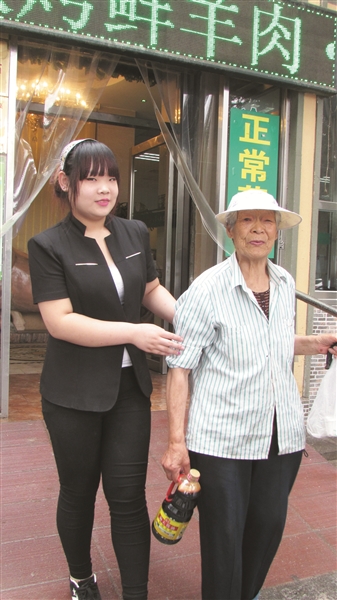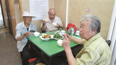 这是7月15日中午,记者在北京赵公口火来顺饭庄看到的一幕,不知情的客人会以为老人在吃“霸王餐”。