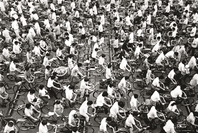 这是上世纪九十年代的上班族骑自行车的潮流。这潮流引领了新中国成立之后的近50年。二十一世纪后,是小轿车的潮流取代了自行车的潮流,环境的污浊也取代了清新的空气。