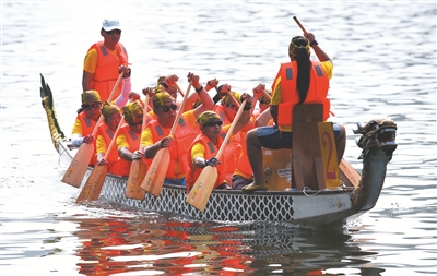 鼓点急促密集,船桨上下翻飞,舷边溅起的水花让龙舟如同腾云驾雾一般……25日上午,2015年首都职工龙舟赛在玉渊潭公园内的八一湖激情上演。当天共有外研社、北京大学等18支代表队入围。相关人士表示,赛龙舟是我国极具群众基础的民间体育运动,举行这次比赛旨在展现首都职工丰富多彩的文体生活,突出他们团结奋进、力争上游的拼搏精神。经过多组多轮激烈角逐,最终,中材集团代表队获得比赛的冠军。