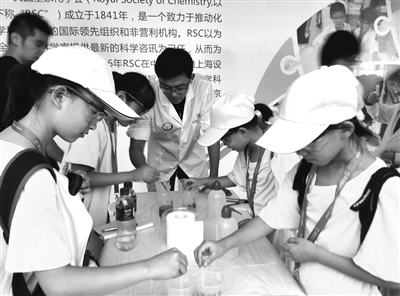 制作金属丝小人、气压模型火箭、橡筋动力直升机……北京学生科技文化夏令营暨第33届北京学生科技节日前开幕,在为期5天的夏令营中,学生们将参与丰富多彩的主题活动。在科学游园会上,30家全市校外教育机构及英国皇家化学会、波音等单位带来上百项科技互动体验项目,让学生们玩得不亦乐乎。 本报记者 任洁 摄影报道
