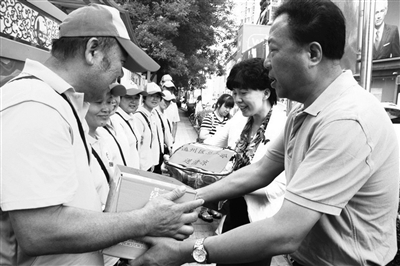 通州区总工会常务副主席吕庆申、副主席朱京萍近日来到马桥环卫所、北苑公交站、北京苏宁云商销售有限公司卖场,向奋战在高温下的环卫职工、展台引导员、柜台销售员送去了价值15万元的洗发水、沐浴露、饮料等解暑降温用品,带去了工会组织对职工的关怀与问候。本报记者 李一然 摄影报道