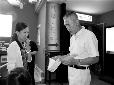 “您看是这儿的票吧。”一位男士递过连在一起的五张票,身边有位女士和三个孩子。“没错。在一楼10排,请往里走。”大人孩子刚进剧场门,又转身出来了。“我们能先去买爆米花,一会儿再进来吗?”男士说话很客气。“行。您去吧。”记者说。