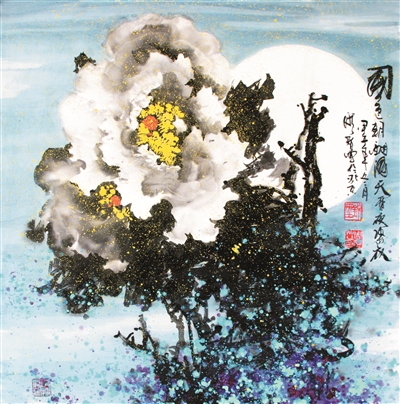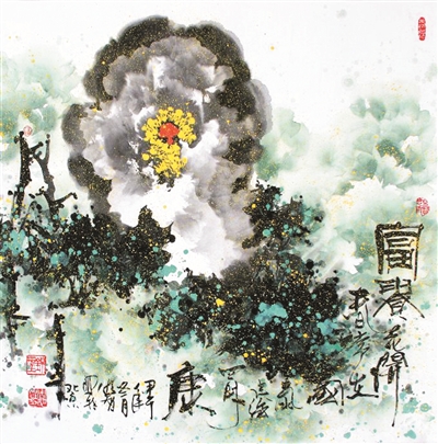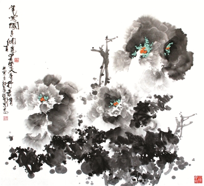 牡丹是画家们经常描绘的题材。牡丹花与其它花鸟或是山石的组合,有着与富贵结合在一起的不同寓意。他在用水、用墨上达到了极致,从恣纵的笔墨中力求天趣。