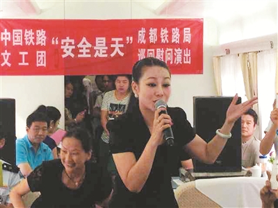 ●从第一次为铁路工人演出到现在,她已经为铁路工人演出了上千场,走过的铁路线有上万公里。