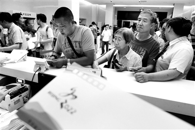 7月31日,北京最终获得了2022年冬季奥运会的主办权。当日,中国邮政特别发行《北京申办2022年冬奥会成功纪念》邮票。晚8时,位于工体北路的体育邮局正式发售该套邮票,有些邮迷凌晨三四点钟就已经到邮局门口排队。虽然采取了“每人一套”的限购方式,但装有纪念邮票及纪念封的邮折在开售30分钟内就被抢购一空。本报记者 边磊 于佳 摄影报道