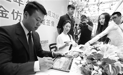 昨天,为纪念北京协同张家口申办冬奥成功这一重大历史时刻,《北京申办2022年冬奥会成功纪念》邮票纯金仿印典藏发行,申冬奥形象大使申雪、赵宏博在现场签售。纯金仿印邮票经中国邮政集团公司批准,由中国黄金集团公司打造,重量为1g,含金量为99.99%。采用超薄浮雕工艺,基于国际先进的印钞造币工艺原理,一体成形,将方寸邮票通过黄金形式完美呈现,更加突显了邮票本身的纪念意义。