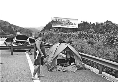 旅行途中感到疲劳,不到服务区内停车休息,而是将车停靠在路边,在高速路上搭起帐篷露营寻刺激。这一幕,发生于7月31日沪渝高速公路沪渝向付家坝停车区,好在没有酿成事故。(8月5日《重庆商报》)