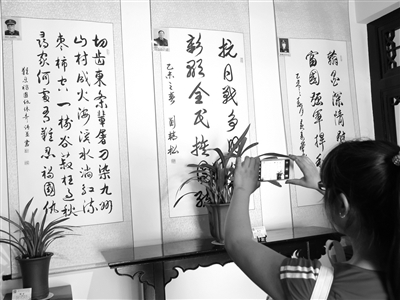 由中国书画收藏家协会、中国将军书画院主办的“纪念抗战胜利70周年书法展”,昨天在中山公园蕙芳园亮相。
