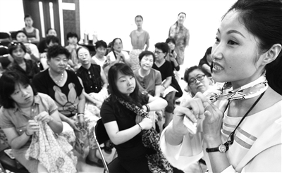 近日“服务创业服务”妇女之家项目落户大栅栏延寿街社区,街道妇联与制衣厂家联手为市民搭建社会公益平台,帮助社区妇女掌握创业创新新技能,礼仪专家为妇女们讲解中国服饰礼仪。
