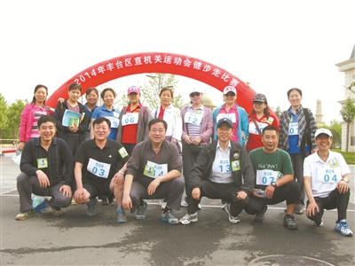 日常工作中,丰台区委老干部局工会注重结合实际情况,每一年均能按照上级要求积极组织参与各项活动。同时,也根据会员需求开展了一些健身项目,增强了会员的身体素质,联系了会员感情,使会员在强身健体的同时愉快地工作。比如:参加各届次的市区运动会、每年的庆“三八”活动、“五月的鲜花”、“京煤杯”登山运动会、室内项目比赛等,在各种运动比赛中多名会员取得名次。2014年,还与区直机关工委工会联合开展了太极拳系列教学活动,吸引了友邻单位和丰台区委老干部局会员参加学习。该局工会组织会员参加了丰台区全民健身日——宛平湖健步走活动,京城畅游南锣鼓巷、莲石湖、园博健步走活动等。多名会员参加了区体育局在园博园举办的8公里越野接力比赛,在20多个参赛单位中,丰台区委老干部局取得第6名的好成绩,获得表彰奖励。并且连续多年参加丰台区乒乓球比赛,多次获得个人和团体等奖项。此外,与友邻单位开展扑克牌比赛,乒乓球友谊赛等。今年,丰台区委老干部局工会组织会员参加了区第十届全民健身体育节,参加了广播操、体质促进运动会等项目的比赛。在每次活动中,会员的团队精神展现了该局工会的精神风貌,优异成绩也展现了个人风采。