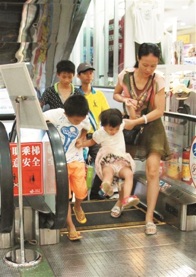 湖北省荆州市安良百货集团近日发生电梯“卷人”事故,一名乘梯女士被卷入自动扶梯中死亡。7月28日,海南省海口市明珠广场,众多市民逛街购物乘坐手扶电梯时变得格外小心。