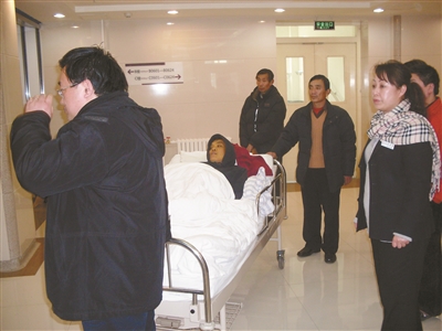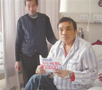 1月17日上午,店长张秋英、经理欧敬松等人,一起前往朝阳医院急诊室看望于和涛,这也是第一次见到于和涛的大哥和姐姐。大哥个子不高,一副典型的老实憨厚模样,姐姐穿着也很朴素。店长将十三店的爱心捐款,装在一个顺天府专用信封里,交给了在病床上的于和涛,于和涛双手接过捐款,激动地连连说:“谢谢顺天府,谢谢顺天府十三店……别的我也不多说了,给大家拜个年吧!”从病房出来,店长又找到主治大夫,要求尽最大努力对于和涛进行治疗。