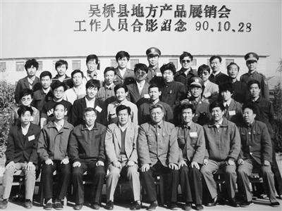 每一次地方产品展销会结束后,父亲和他的“学员”们都会合影留念。这张照片是他们最后一次合影,因为从那以后,展销会的展牌不再人工书写,都是用电脑打的字了。