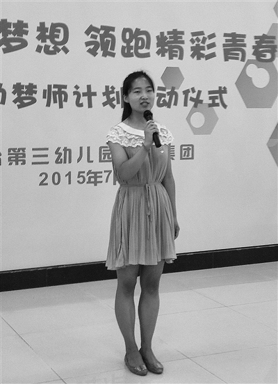 李娜:我的梦想就是快乐孩子,充实自己,尽自己的努力实现自身价值。幼儿园是一个舞台,我在这里经历着种种考验。