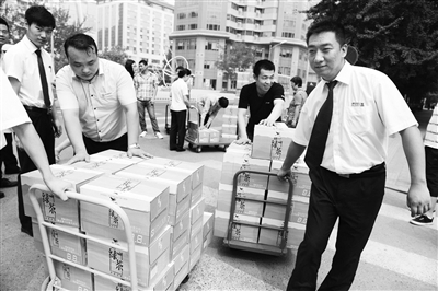 “我们单位10箱,小伙子们,搬!”一声令下,建澜新居物业的职工立刻行动起来。近日,东城区东直门街道总工会启动为职工送清凉活动,当天为辖区70余家单位送去近900箱清凉饮料。工作人员分别驻守5个发放站点,方便职工领取饮料。据了解,清凉饮料发放主要倾向于一线作业人员较多的单位。本报记者 边磊 于佳 摄影报道