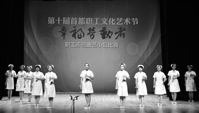 第十届首都职工文化艺术节正在如火如荼地进行中,在8月10日进行的职工原创曲艺小品决赛现场,十支参赛队伍带来的15个曲艺小品节目引得现场欢笑不断。讲身边故事,弘扬社会正能量成为本次比赛各参赛队伍作品所表现的主题。评委表示,把职工文艺推向更大舞台需要工会助力。