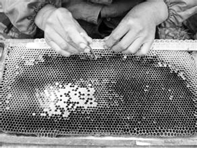 上世纪80年代中期,我初中毕业后来到一家养蜂场做临时工,开始的工作是除院内的杂草,熟悉内部情况,在师傅的指导下,戴着有面罩的“防蜂帽”取“蜂胚”。过了一段时间,蜜蜂蜇过后也没有刚开始那么大反应了,领导就分派我做“移虫”工作。后来,我才知道这项工作是提取蜂王浆的重要工序。