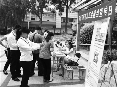 本报讯(首席记者 边磊 通讯员 柯宁宁)企业建立工会对自身有什么好处?企业建会后职工能享受什么福利?近日,东城区交道口街道总工会在北新桥地铁站西南口露天花园设立了宣传站,开展了“交道口街道总工会建会宣传日活动”。