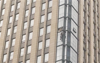 点评:“蜘蛛人”和“蜘蛛侠”还是有分别的,他们也许只是普通的农民工,不能像超级英雄那样飞来飞去,系在身上的绳索是他们唯一的保障,遇有恶劣天气的时候,就不要再出工了!