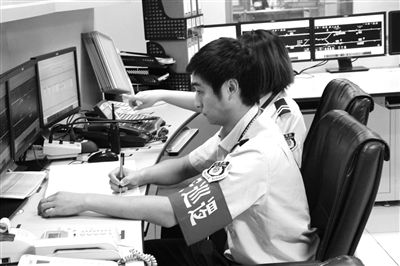 处理完现场情况,徐征回到值班站长室,对刚刚的巡视情况进行认真记录,对于存在问题的设备设施,他通知综控员进行及时报修,徐征介绍,为了做好世锦赛和阅兵活动的筹备工作,站区组织所属各车站对车站所辖安全、服务、安检等各类设备设施、行车、安全备品以及售检票所需的票卡、发票进行了非常细致的排查,大到车站屏蔽门系统、鼠标台系统、电梯系统、广播系统等,小到车站一次性雨衣的库存数量、发票、标志标识情况,值班站长都要定期、定时进行巡视和排查,做到心中有数。