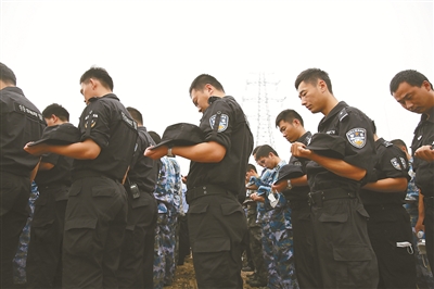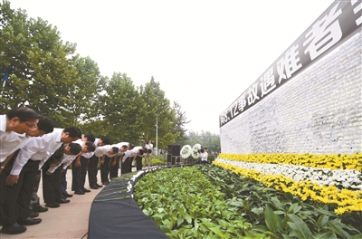 18日上午9时许,天津港“8·12”特别重大火灾爆炸事故现场以鸣笛、默哀等形式,悼念在事故中不幸罹难的同胞。按照中国传统习俗,8月18日为天津港爆炸事故遇难者“头七”祭奠日。悼念活动共设立7个悼念点。在主会场,武警、消防战士、志愿者、遇难者家属等数百人手持白菊花,面对事故遇难者纪念墙,表达对逝者的哀思。据新华社