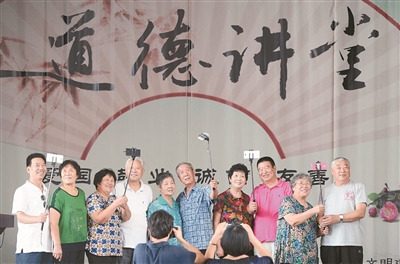 8月20日,通州道德讲堂“爱在七夕”专场活动上,一首《牵手》拉开序幕。“2015通州榜样”人物、永乐店镇德仁务村张亚清讲述了悉心照顾受伤致残的丈夫、离婚不离家的感人事迹;好军嫂、马驹桥镇小杜社村路玉伶讲述了独自照顾父母和抚育孩子,全力支持国防事业,默默奉献、无怨无悔的热切情怀……听着模范们回忆自己和爱人的风雨历程,现场观众潸然泪下,纷纷感慨有爱才有家。活动最后,道德模范和公共文明引导员共同为现场夫妻送上象征吉祥的小礼物——“自拍神器”,愿大家留住生活中的美好影像、留住爱情中的美好片段。