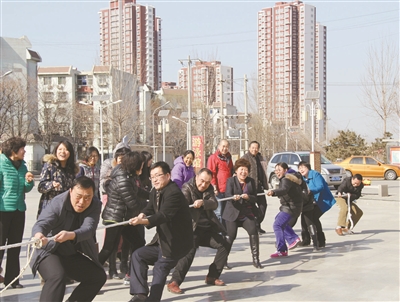 “加油、加油!”只见两支队伍的队员们正在双手紧握长绳,憋足了劲拼命往后拉,旁边职工自发组成啦啦队为比赛队员呐喊加油。随着红绳被一点一点拉过白线,输掉比赛的一方有几名队员跌倒在地并做出了诙谐的表情,旁边的观众笑声一片,拔河比赛体现了团结协作的精神,同时也让职工收获了快乐的心情。
