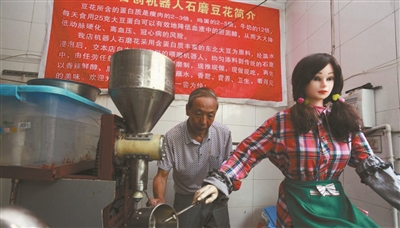 点评:高手果然在民间,造机器人推石磨豆花,不仅省了人力,还吸引眼球,是独辟蹊径的创造。