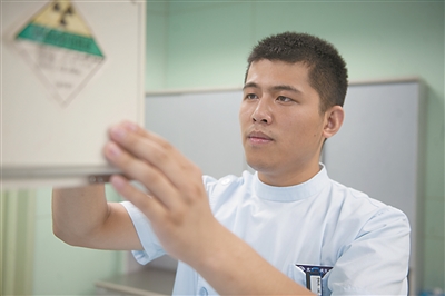 该医院泌尿科护士长高丽娟告诉记者,王越被分配到这里是因为男孩子对机器有天生的兴趣,而且检查的病人有许多都是脊髓损伤患者,行动不便,也需要有力气的护士帮助其上下检查床。这些都是女护士欠缺的。