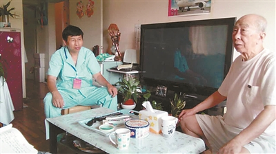 83岁的刘大爷腿脚方便,身上也没什么大毛病,唯独眼睛不好。在多年前一次白内障手术中,刘大爷的眼睛发生感染,术后眼睛受到了很大损伤,视力很差,不能受刺激,甚至身体的碰撞都会造成视网膜脱落以至失明。在2012年一次从床上下地时摔了一下后,刘大爷通过北京安康乐月嫂服务有限公司找到了护工吴军,到现在3年时间,刘大爷早已把吴军看做了自己的守护神。