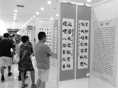 本报讯(记者 马超)近日,由北京市文联主办、北京楹联学会承办的“纪念中国人民抗日战争胜利70周年全国征联获奖作品书法展”开幕式举行。