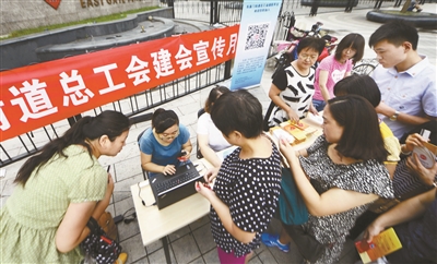 昨天,东城区东直门街道总工会在东环广场写字楼前支起建会宣传摊,向过往职工宣传工会组织的职能。为了普惠职工,工会还为已入会职工准备了指甲刀、小毛巾等物品,辖区职工持京卡就可领取。工会负责人介绍,目前建会工作已进入攻坚阶段,下一步,工作人员还将深入楼宇挨户宣传,使更多职工享受到工会组织带来的服务。