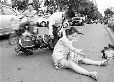 8月22日傍晚6点50分左右,一名骑电动车的女子在中关村东路辅路摔倒,横在辅路中央,地上一小摊血。她摔倒后十几分钟之内,虽然有路人一直围观,却无人上前扶她起来,但有人帮忙打了120。不久,她的同事出现将她救起。(8月23日《法制晚报》)