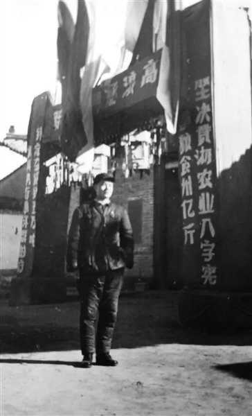 在“大跃进”中,各地浮夸风盛行,虚报夸大宣传粮食产量,而作为一个农业科技工作者,父亲深知粮食亩产不可能过万斤的,但当时那个年代一个刚毕业的学生,又有多大的能力呢,只能以沉默来表达这一切。这张具有时代特殊记忆的照片,是父亲站在他工作单位的门口留下的。
