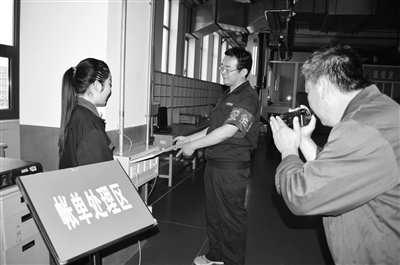 北京邮政商函局工会近日拍摄制作了《安全伴我行》安全规范宣传片。宣传片以银企服务中心职工一天的工作内容为主线,从进出生产场地主动出示证件,到现场巡查、数据查询、账单装订等工作,严格按照安全生产规范执行。拍摄宣传片在提高职工安全责任意识的同时,也使部分职工圆了演员梦。本报记者 边磊 摄影报道